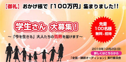- 優勝賞金100万円の「全国・講師オーディション」を開催。